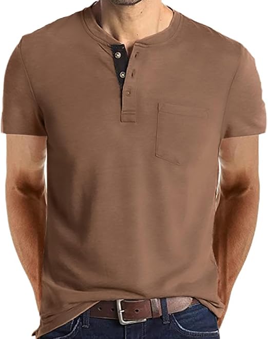 Mens Fashion Henley Shirts Long Sleeve Button Cotton T-Shirt with Pocket