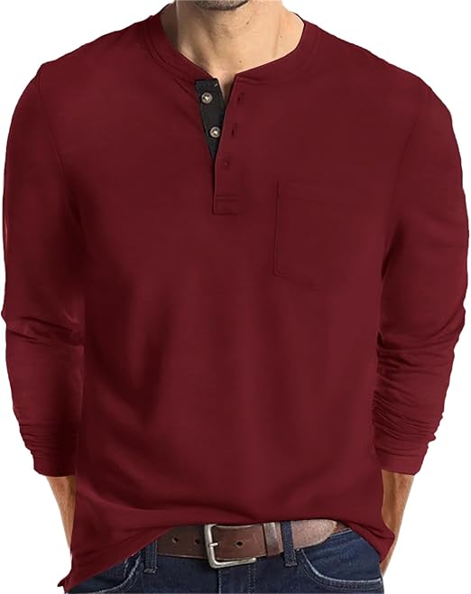 Mens Fashion Henley Shirts Long Sleeve Button Cotton T-Shirt with Pocket